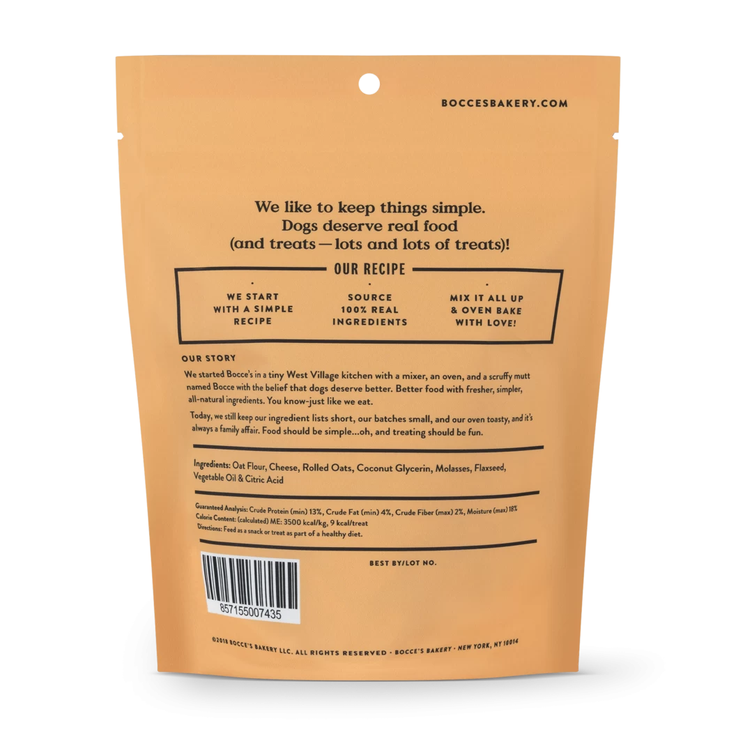 BOCCE’S BAKERY treats are all wheat-free with fresh, human-grade ingredients perfect for pups with allergies or sensitive bellies. Baked in small batches with no chemicals or preservatives.