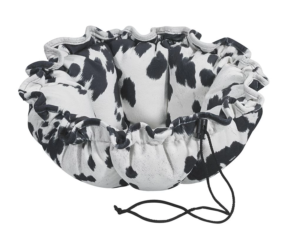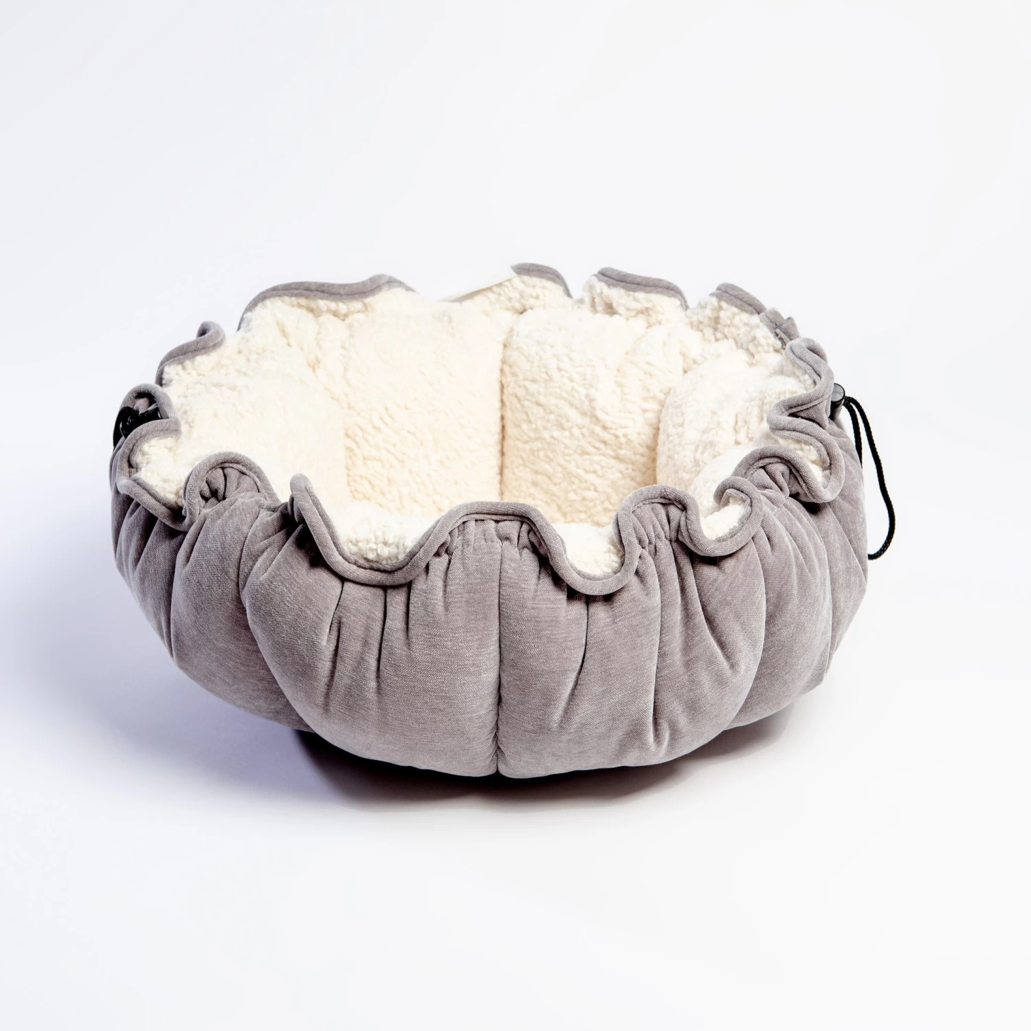This cleverly designed, reversible bed can be used flat as a soft lounging mat or by simply pulling the strings to adjust the size of the opening, it becomes the ultimate cozy hideaway.