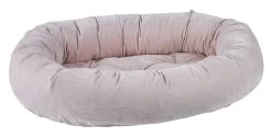 The oval outer ring of this gorgeous bed creates the feeling of security that pets love, while the removable tufted cushion can be used as a crate or travel mat. Circular tufting creates an elegant upholstered look and ensures fiber does not clump or shift when washing.