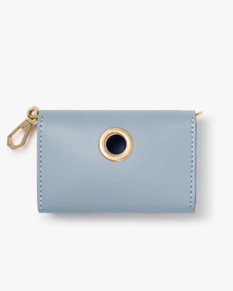 And with this chic bag holder, you can store the rolls of disposable bags so that they don’t unroll in your pouch or pocket. Place a roll inside the bag, take the end of the first bag and pull it out through the rear hole of the bag holder. Then close the front button. Every time you need one, you can pull it out from the back without having to take the roll out each time.