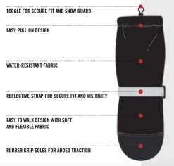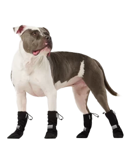 Includes a full set of 4 boots with an easy pull-on design which secures with a toggle at the top, and a reflective strap around the paw.