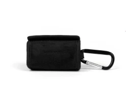 The Easy Poo Bag Pouch fits one standard poop roll, is soft and lightweight with a carabiner to clip on your leash, bag or belt.Â