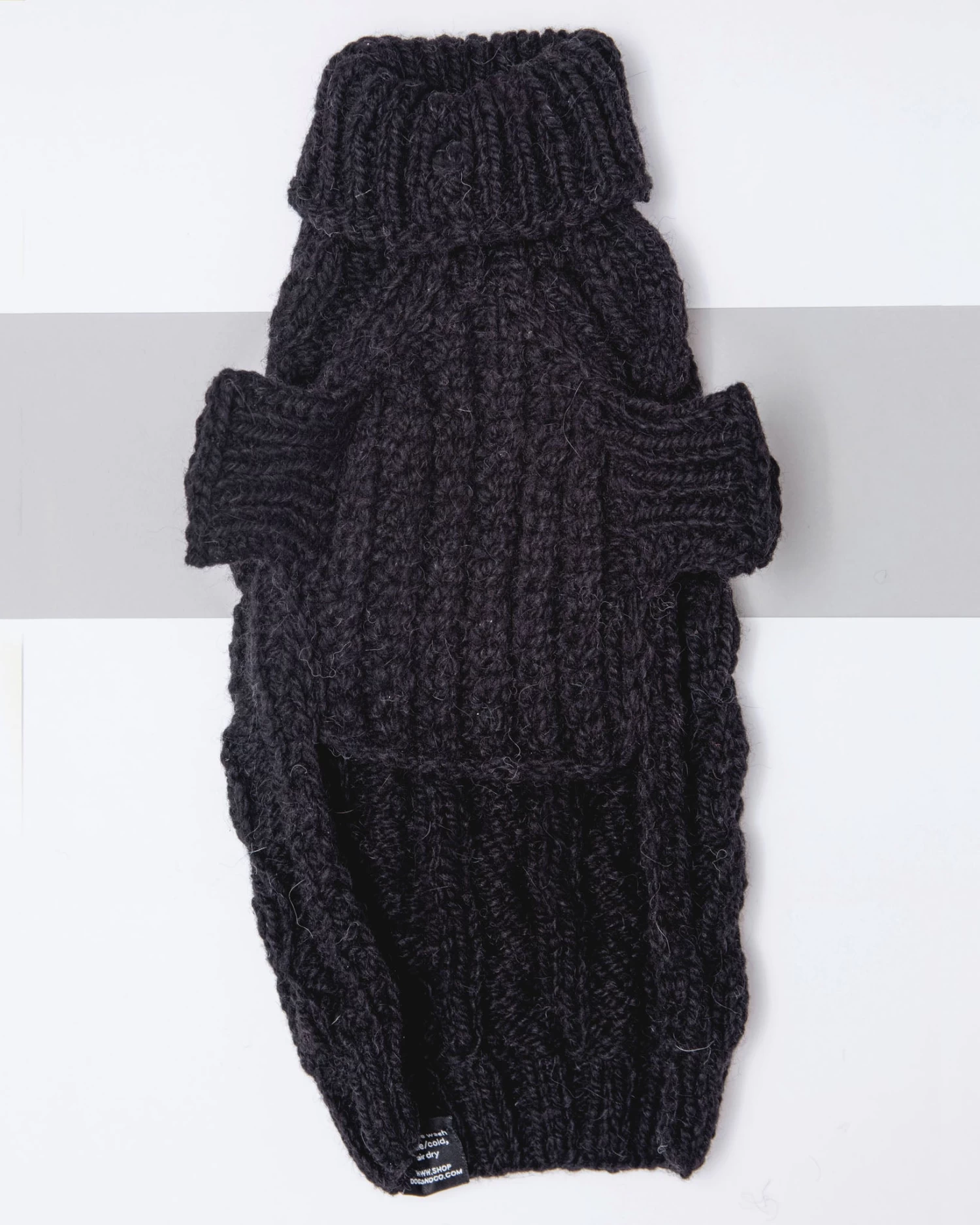 A chunky cable knit design softened for easy everyday wear in 100% natural Alpaca wool. A fold-down Roll Neck add extra warmth for windy winter days, and ribbed knit sleeves held hold body heat in to keep your pup toasty all season long.