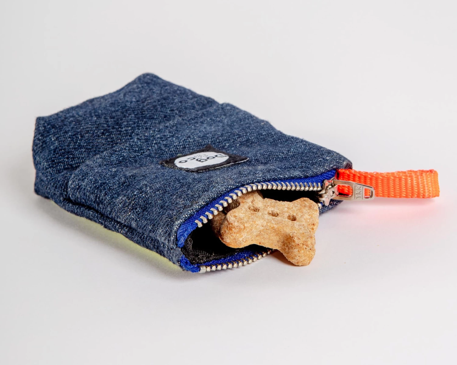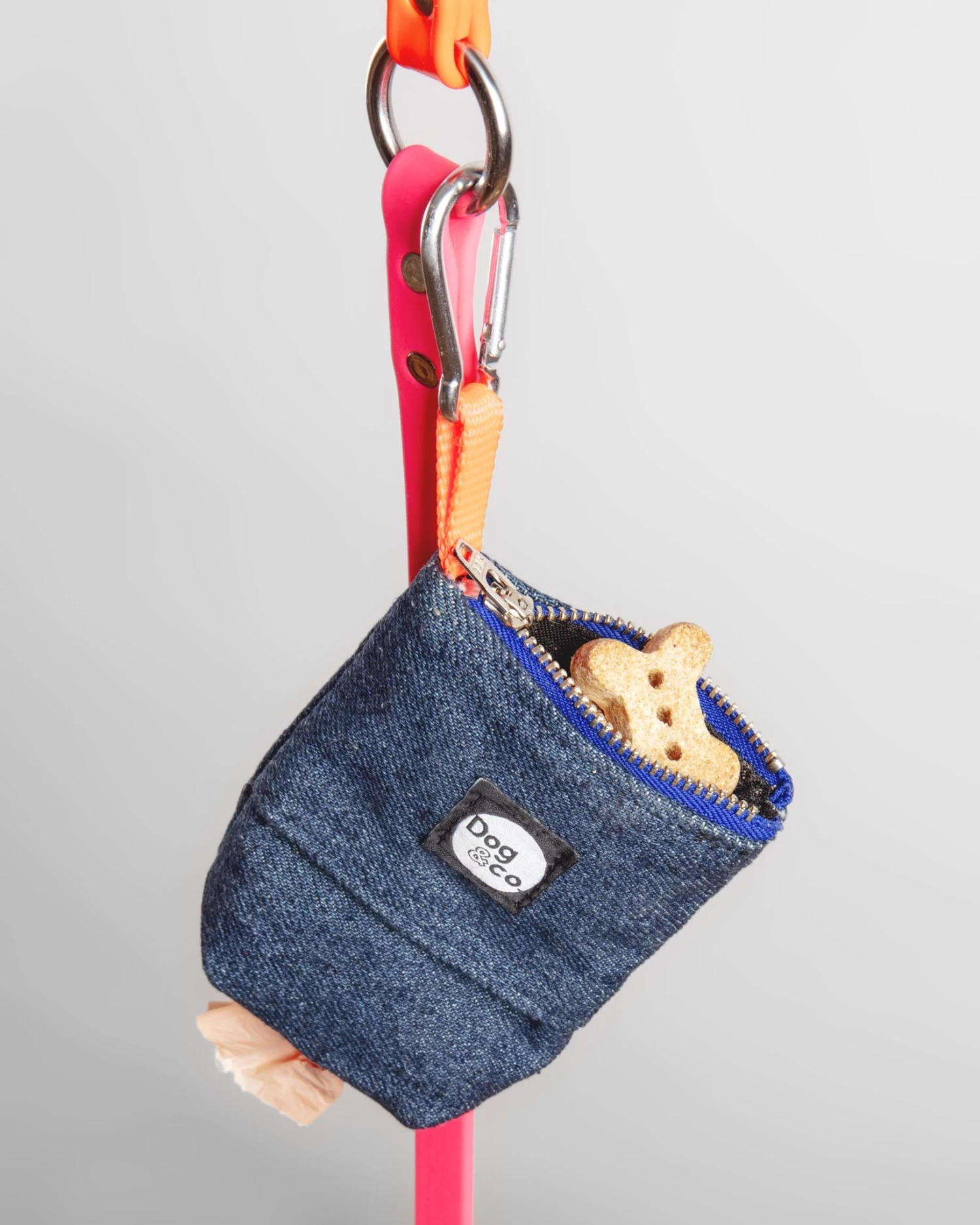 DOG & CO. COLLECTION Good Girl Bag Treat + Poop Bag Holder In Denim + Neon (Made In NYC)