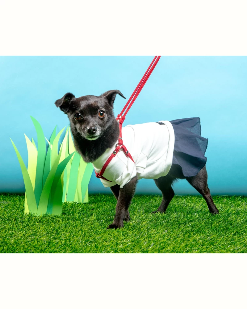 The DOG & CO. Step-in Harness is a super convenient lead and harness all in one! Made of rolled nylon, the attached leash is 4ft long and the harness features an adjustable slide that makes taking on and off a breeze! The fit is also easily adjustable to be worn over sweaters and other outwear in the colder months.Â