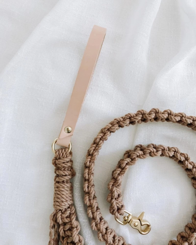 EMBER & IVORY Macrame And Leather Dog Leash In Brown (Made In The USA)