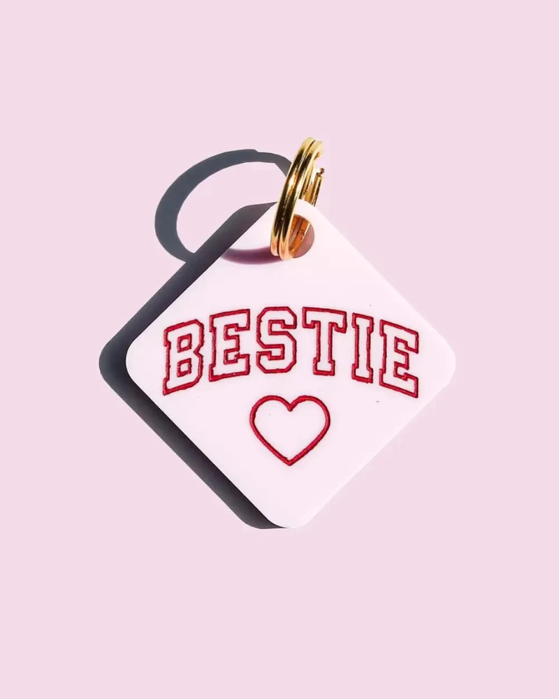 Show your Bestie some love with this blush acrylic pastel pet tag.