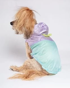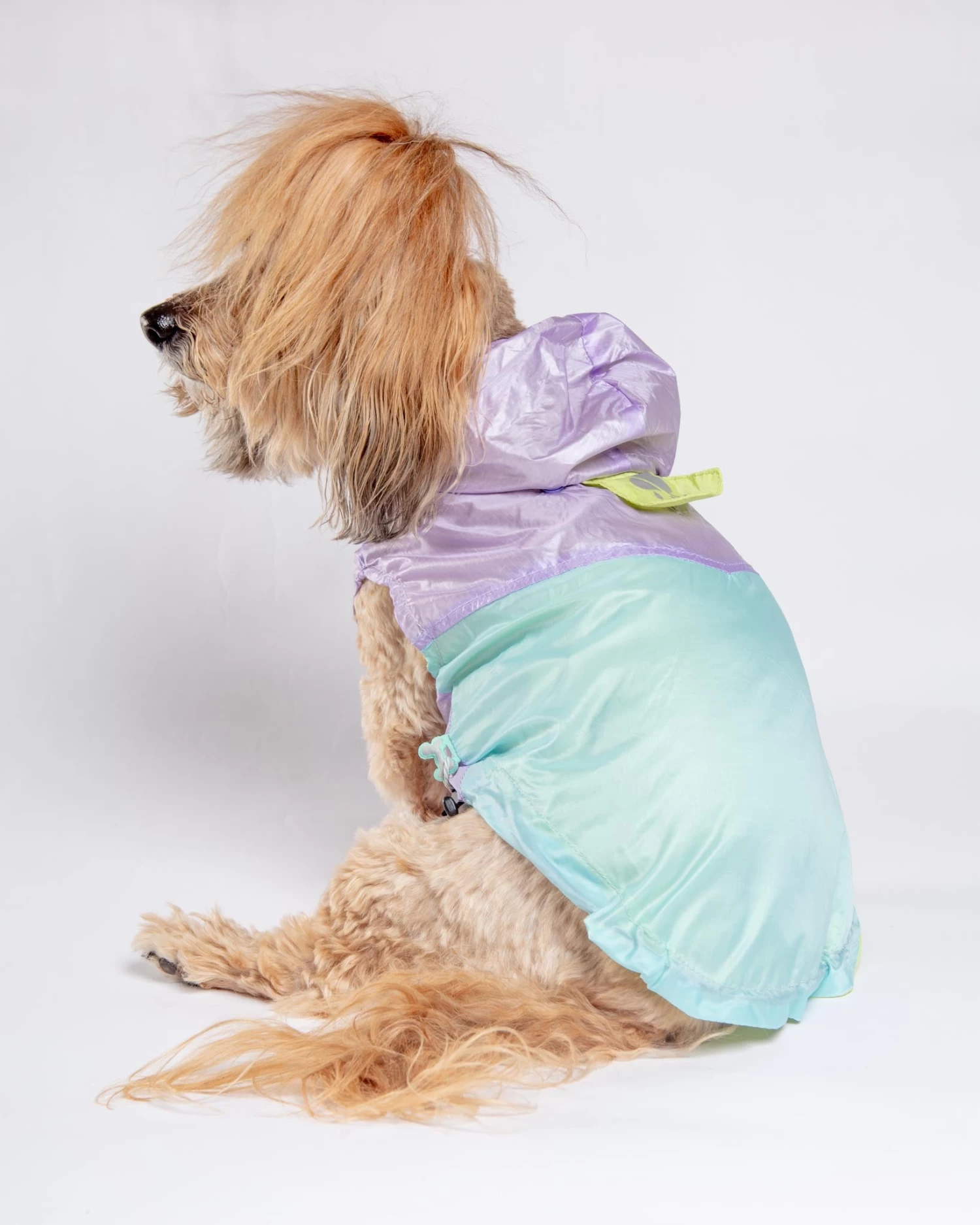 This water-resistant, lightweight, sleeveless jacket is perfect for those rainy days. It features a color-poppin’ two-toned design with front chest snap buttons that are excellent for easy closure. The snap buttons on the back secure the hoodie back off your pup’s head for effortless wearability. An added harness hole with a rain protection flap means your pup can easily wear their harness underneath whilst the flap keeps water from seeping through.