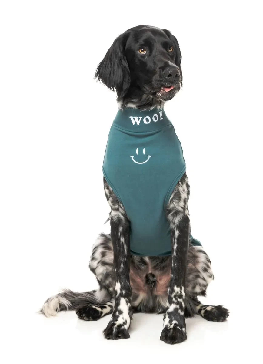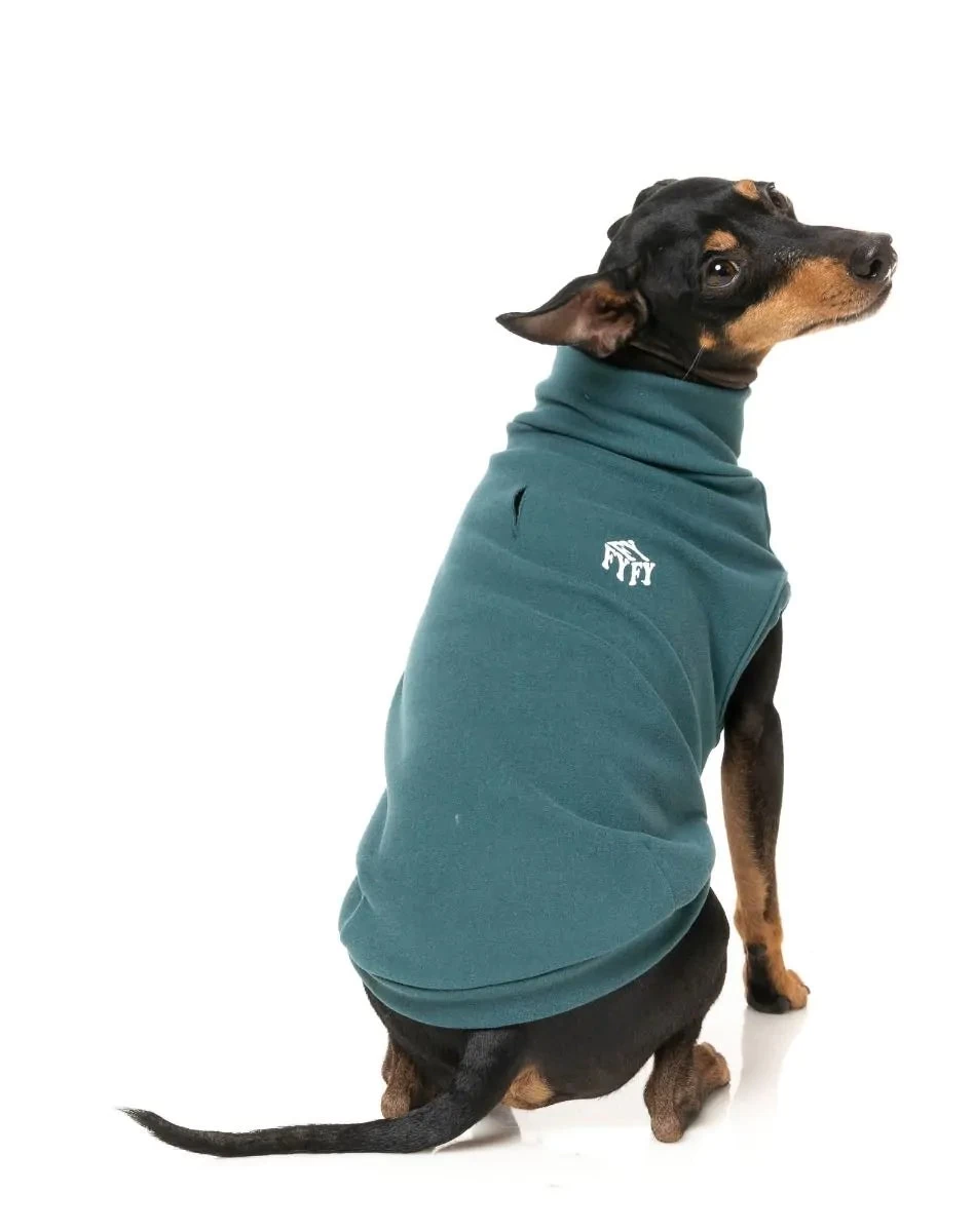 Stretchy fabric and easy arm holes make for the perfect fit. Mock turtle-neckline adds some warmth on cooler days, but tank style means your pup won’t overheat when it’s warmer. Awesome under outerwear as well!