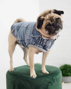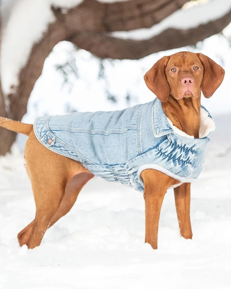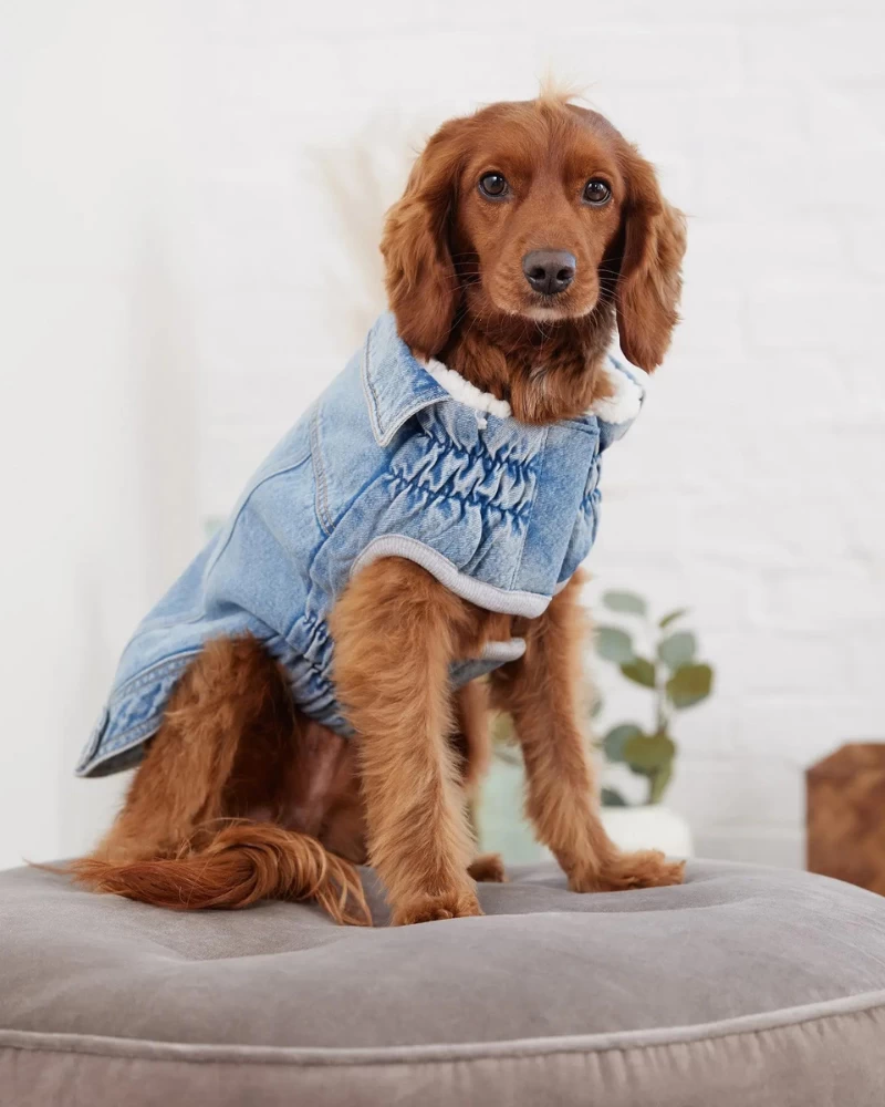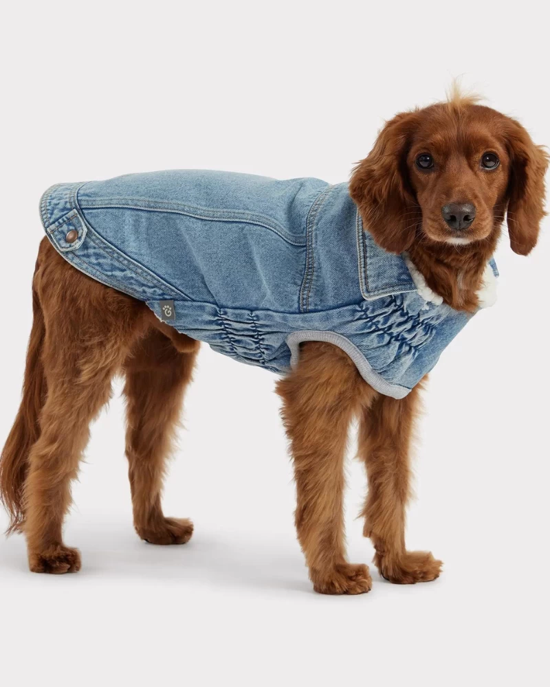 Keep your pup cozy & warm with the Denim Shearling Jacket by GF PET.