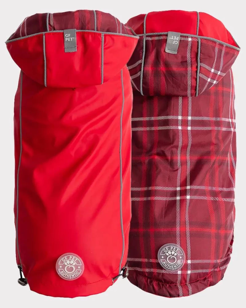 The GF Pet® reversible raincoat is a unisex wardrobe staple and has everything! It features Elasto-fit® Technology for a great fit; it is waterproof, reflective and reversible. Buttery soft, waterproof PU on one side and luxurious, water-resistant polyester printed design on the other. Tackable hood can be worn up or down. Fashion and function combined!