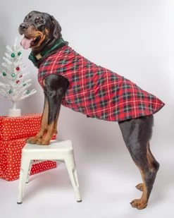 GOLD PAW Stretch Fleece In Red Tartan Plaid (Made In The USA)