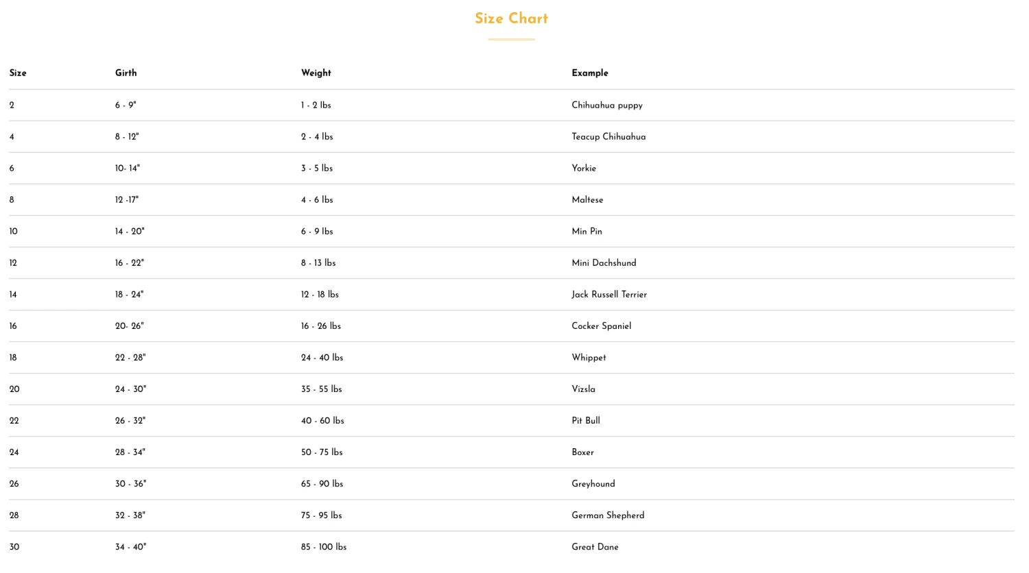 - See size chart for sizing details. Â It is recommended to choose the smaller size for your dog as these items are intended to fit on the snugger side for maximum warmth. Â As they have such great stretch, these fit well even on dogs with broad chests.