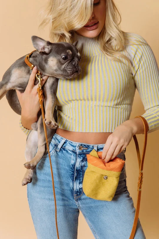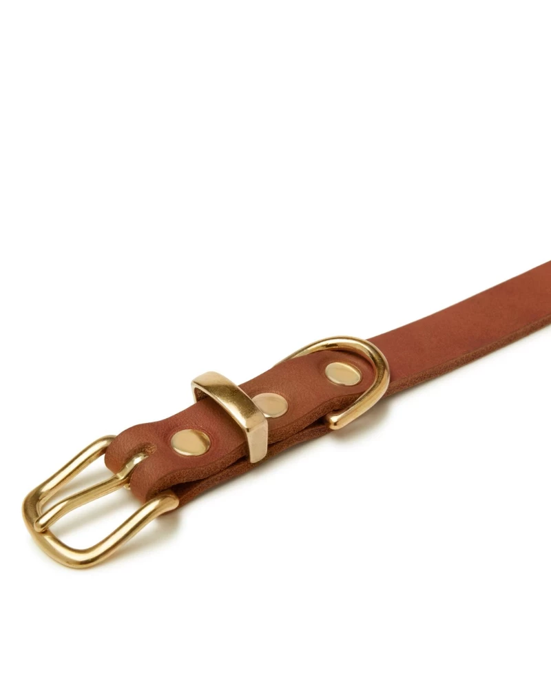 The minimalistic buckle, rivets, and leash clip gleam in the sunlight with a luxury finish.