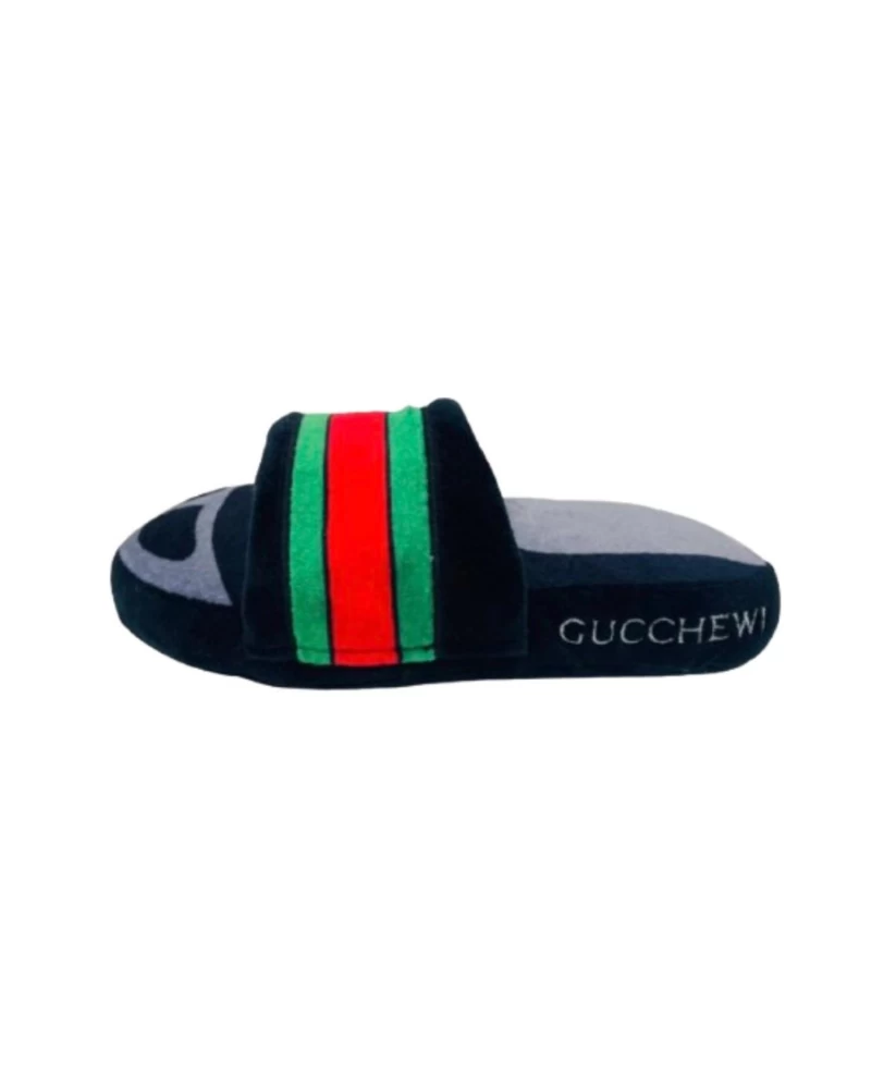 The Gucchewy Plush Dog Toy is perfect for your designer-loving dog. This poly-filled plush toy features a squeaker for extra fun.