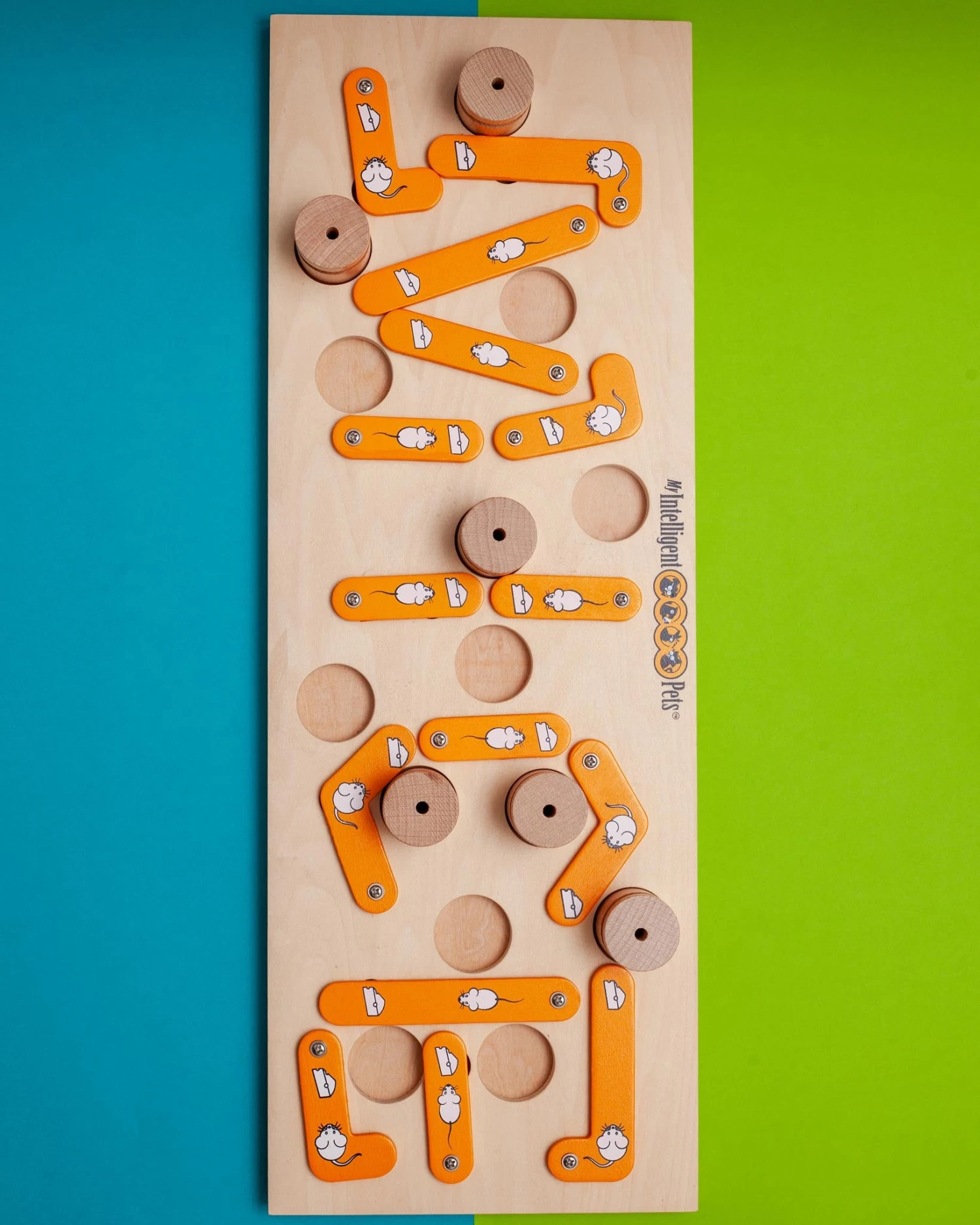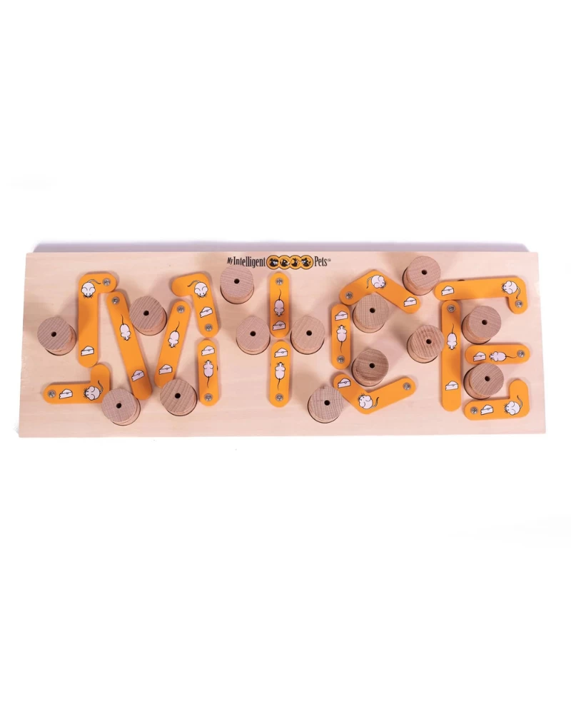 As the name says it all, this game was designed for cats. It has a difficulty level of 3 paws. The treats are hidden under movable orange pieces that form a word MICE.