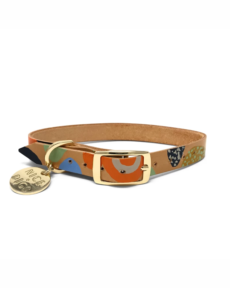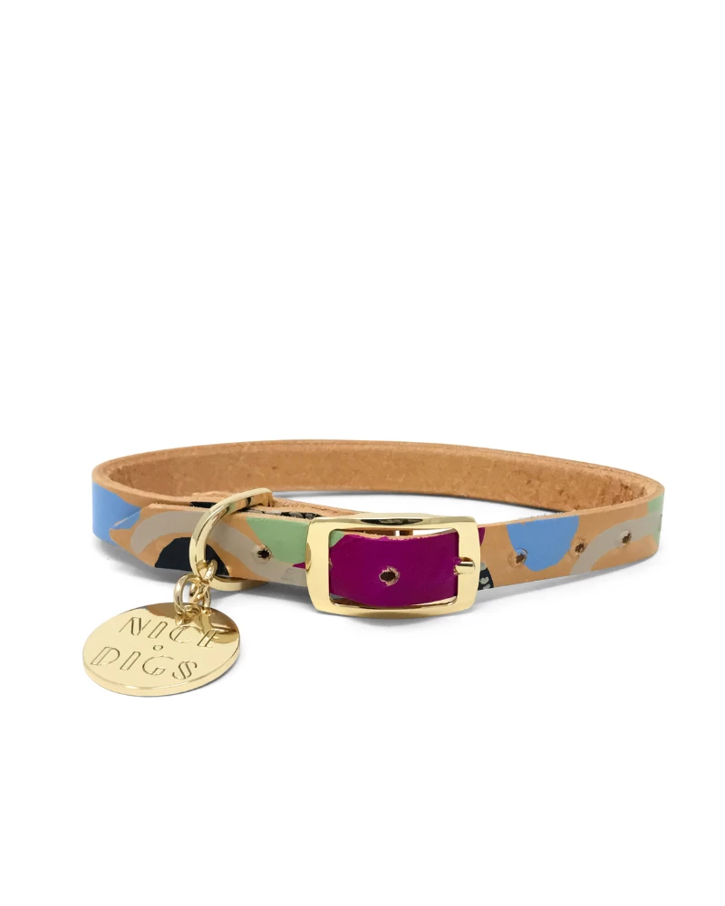 This playful hand-painted collar by NICE DIGS is the ultimate unique piece for your one-of-a-kind dog. Seeing your carefree pup be the best version of themself in this collar is guaranteed to make you happier than that one time you beat your older brother at Monopoly.