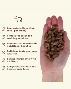 These high-value beef liver treats capture attention, and keep it. Once you’ve got their attention with these treats, you’ll be one step closer to training a perfect pup.