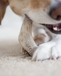 This tasty (and healthy) marrow-filled chew will keep your pup’s mouth engaged and help decrease unwanted biting and chewing (plus, dogs love tasty chews)!
