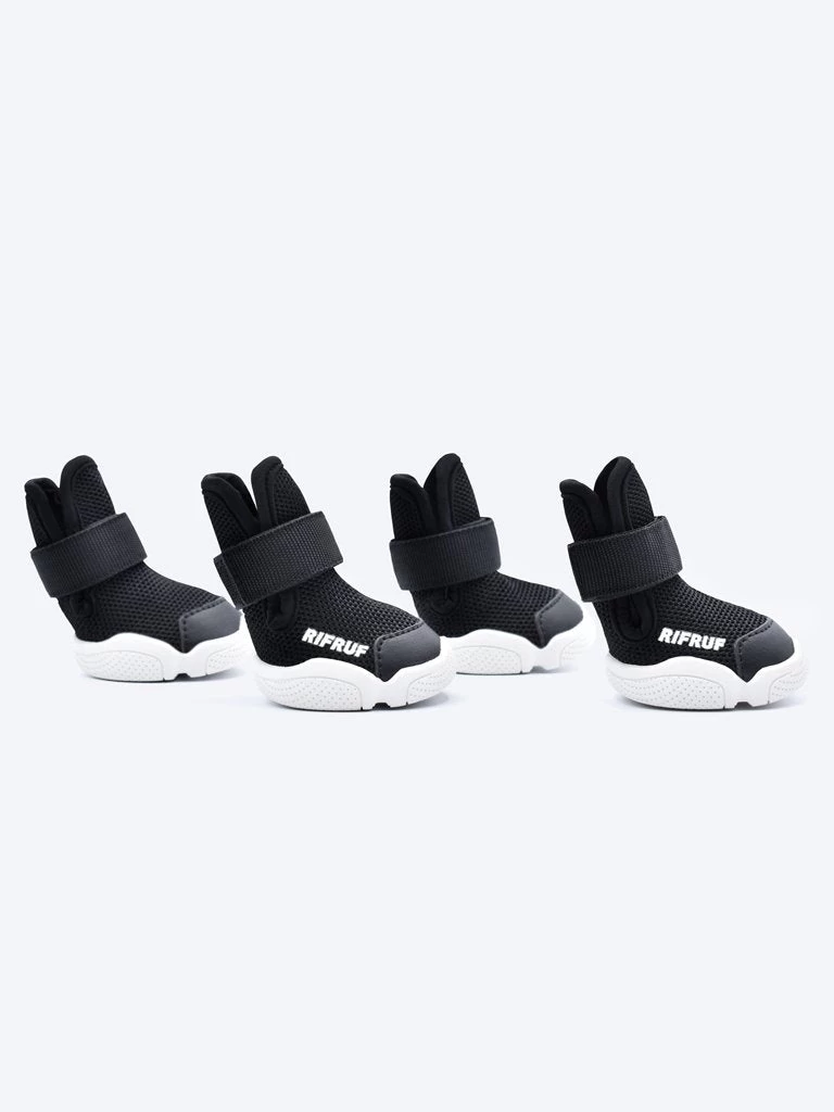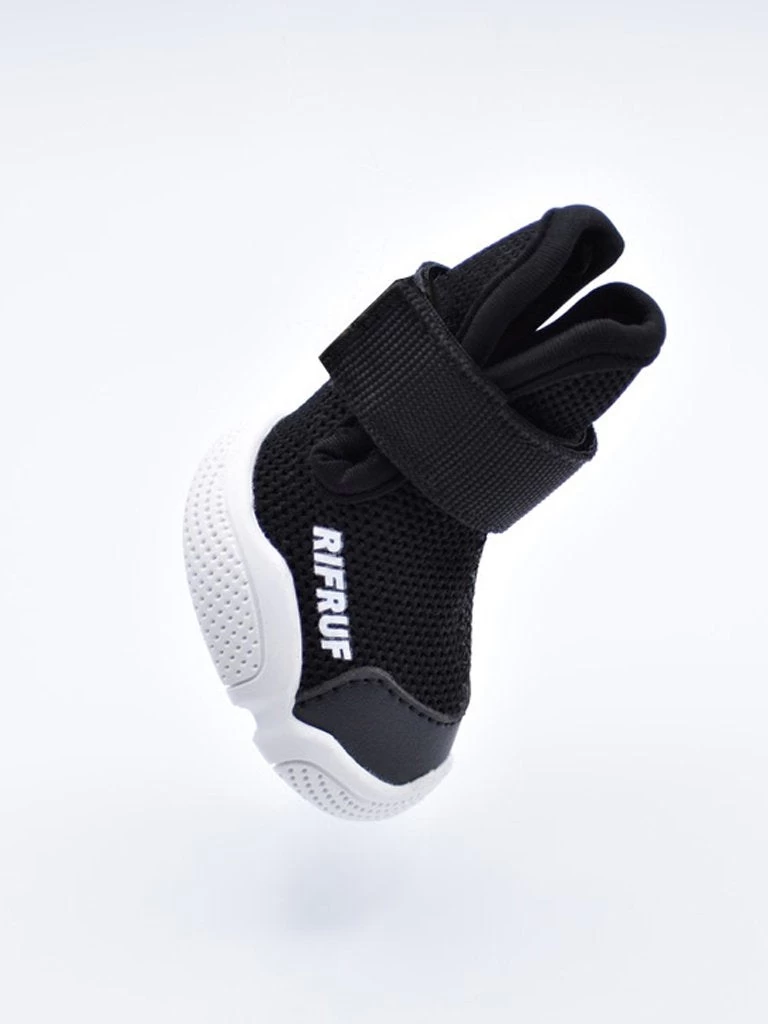 Durable RUFKNIT™ mesh upper provides maximum breathability and protection, while natural 100% rubber midsole and outsoles protect paws from rough surfaces. Hook and loop strap closure is adjustable to ensure appropriate tightness for your dog’s wrists/ankles.