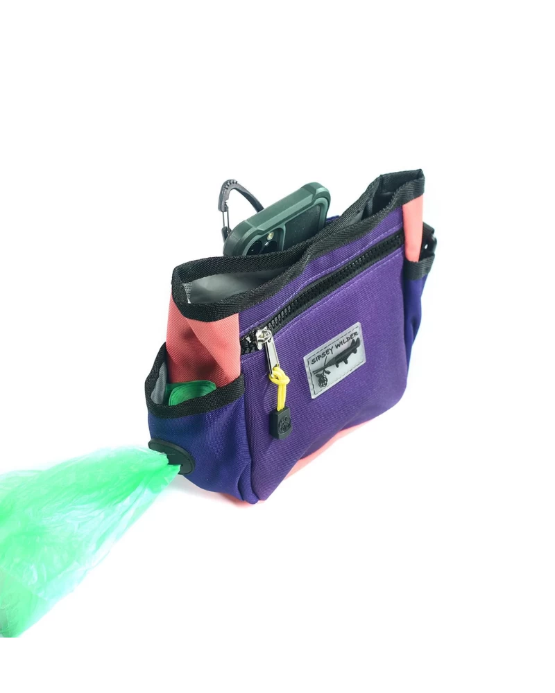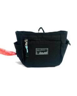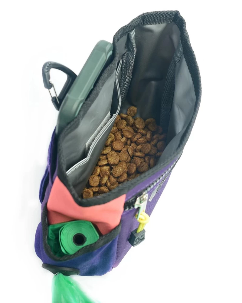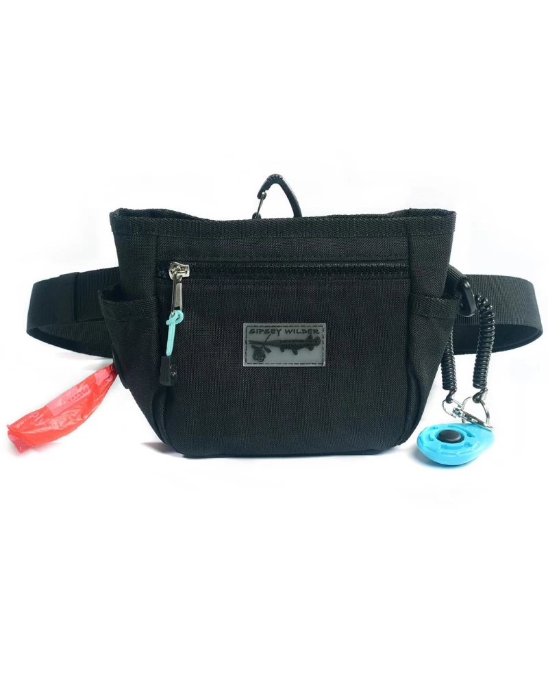 You can clip on or wear this handy and versatile pouch by SIPSEY WILDER that is perfect for treats OR dog poop (hopefully not at the same time). It Includes a large divided treat compartment with a magnet closure for easy access, doggie waste bag compartment and a zippered compartment for small personal items.