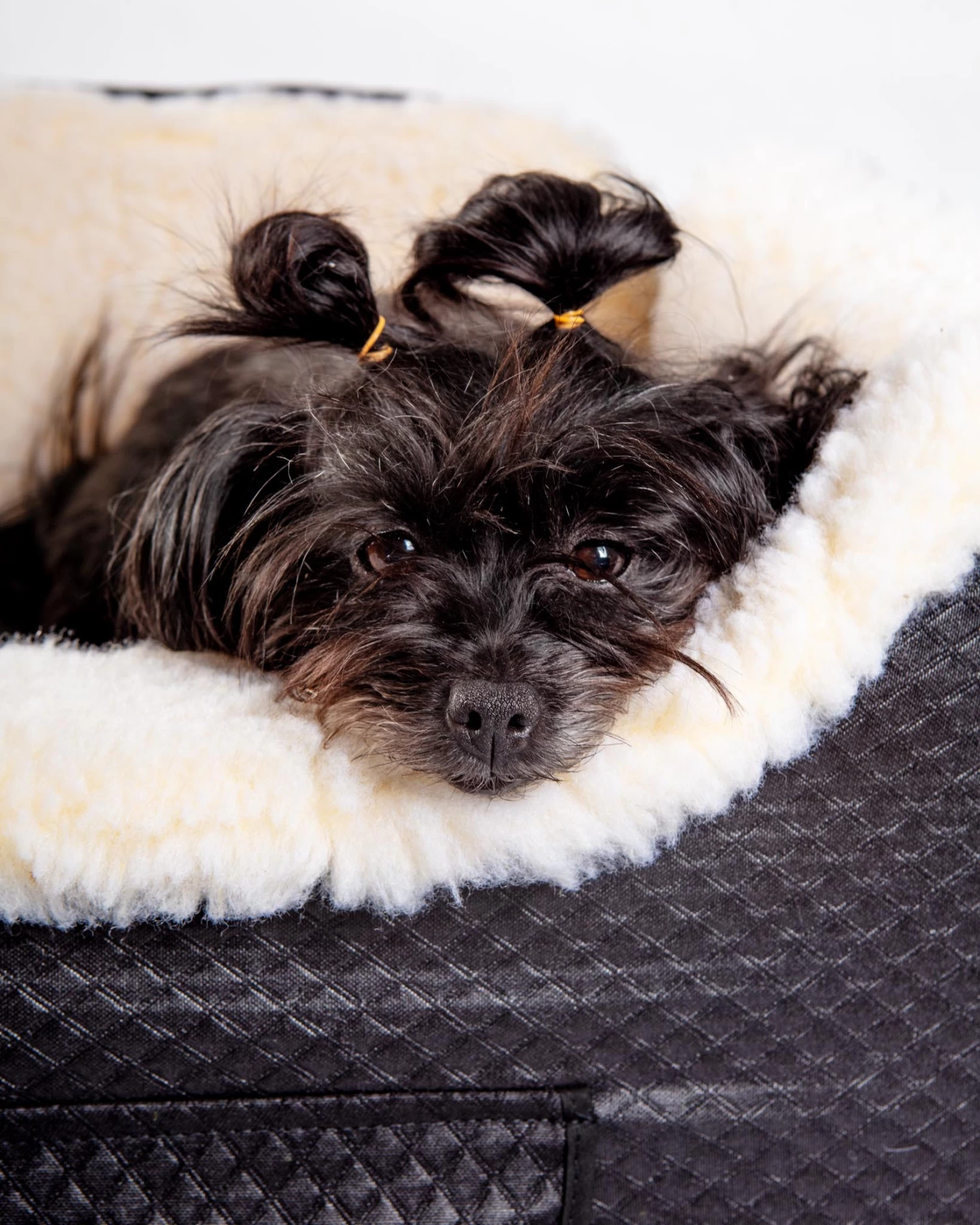 - Sherpa Interior The sherpa dog car seat lining is soft and snuggly.
