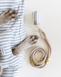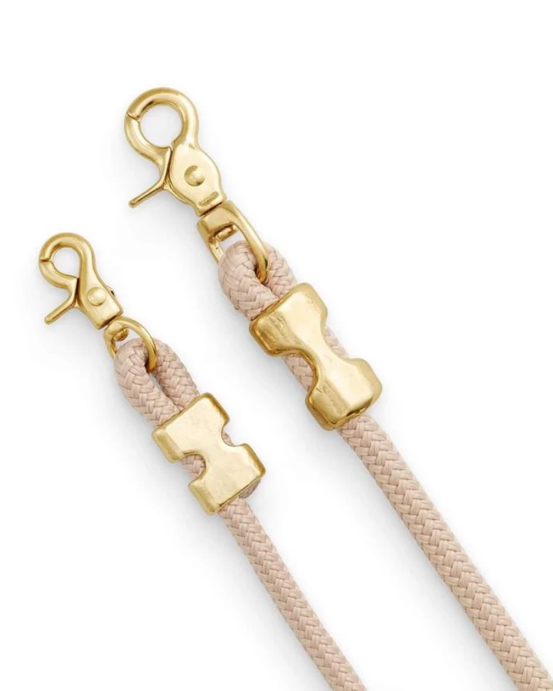 Your dog will turn heads at the dog park with this beautiful neutral marine rope paired with luxe brass hardware.