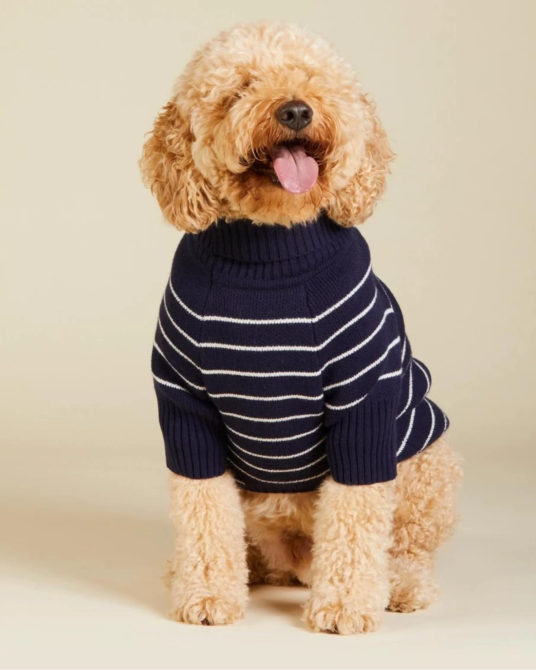 Keep your furry friend warm in style with the classic navy and white Mariner Stripe sweater. Part of a limited edition Foggy Dog x Reese Witherspoon’s lifestyle brand, Draper James.