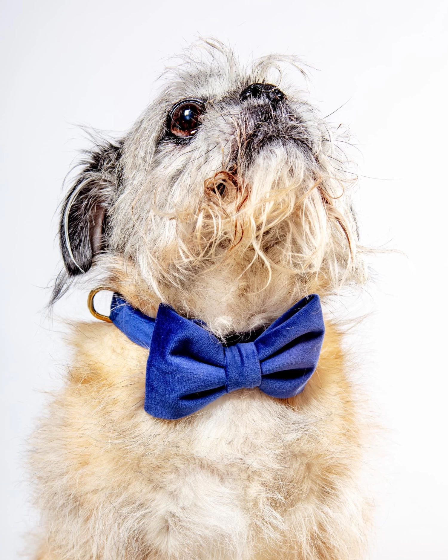 THE FOGGY DOG Navy Velvet Dog Bow-Tie (Made In The USA)