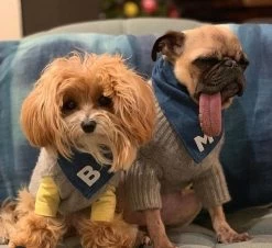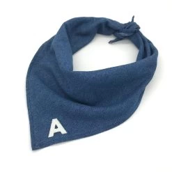 Thrift Dog repurposes denim and other forgotten clothing items into accessories for man’s best friend. Each Custom Initial Bandana is hand-stitched and crafted from recycled denim. These bandanas are triangular in shape and available in both dark and light denim washes.