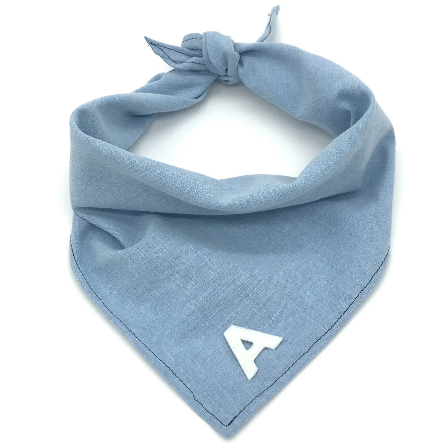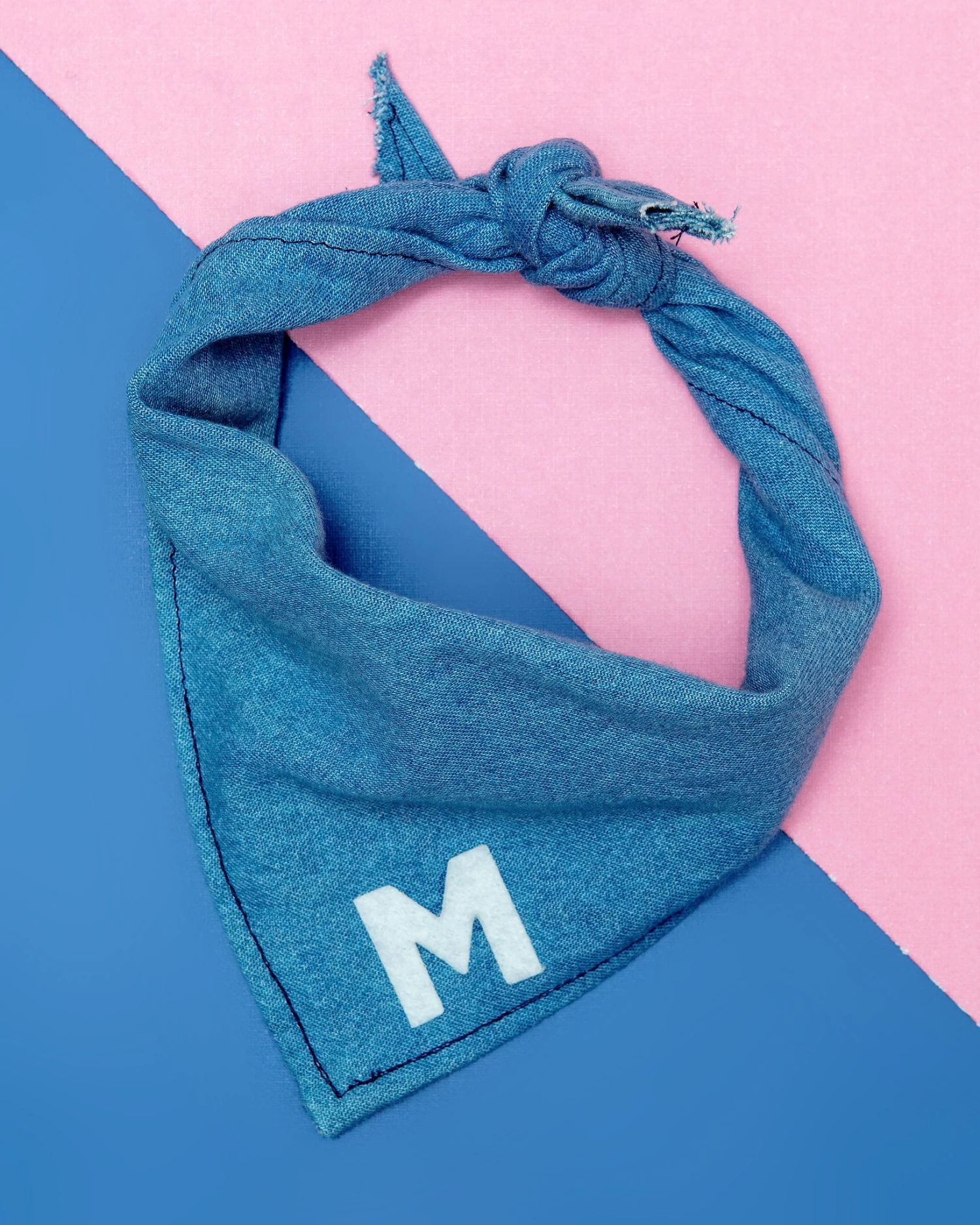 Thrift Dog repurposes denim and other forgotten clothing items into accessories for man’s best friend. Each Custom Initial Bandana is hand-stitched and crafted from recycled denim. These bandanas are triangular in shape and available in both dark and light denim washes.