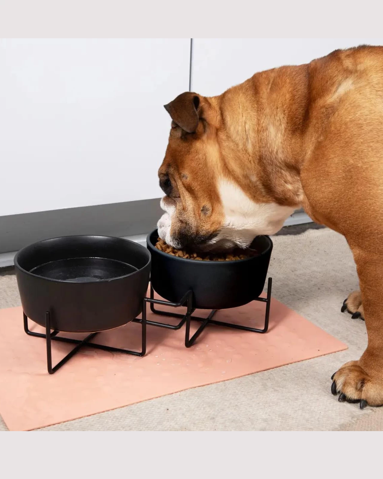 WAGGO Simple Solid Double Feeder Bowl + Bowl Stand In Black