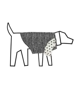 Geometric print body with one solid black sleeve and the other sleeve in white with black polka dots. Who said your sleeves need to match?