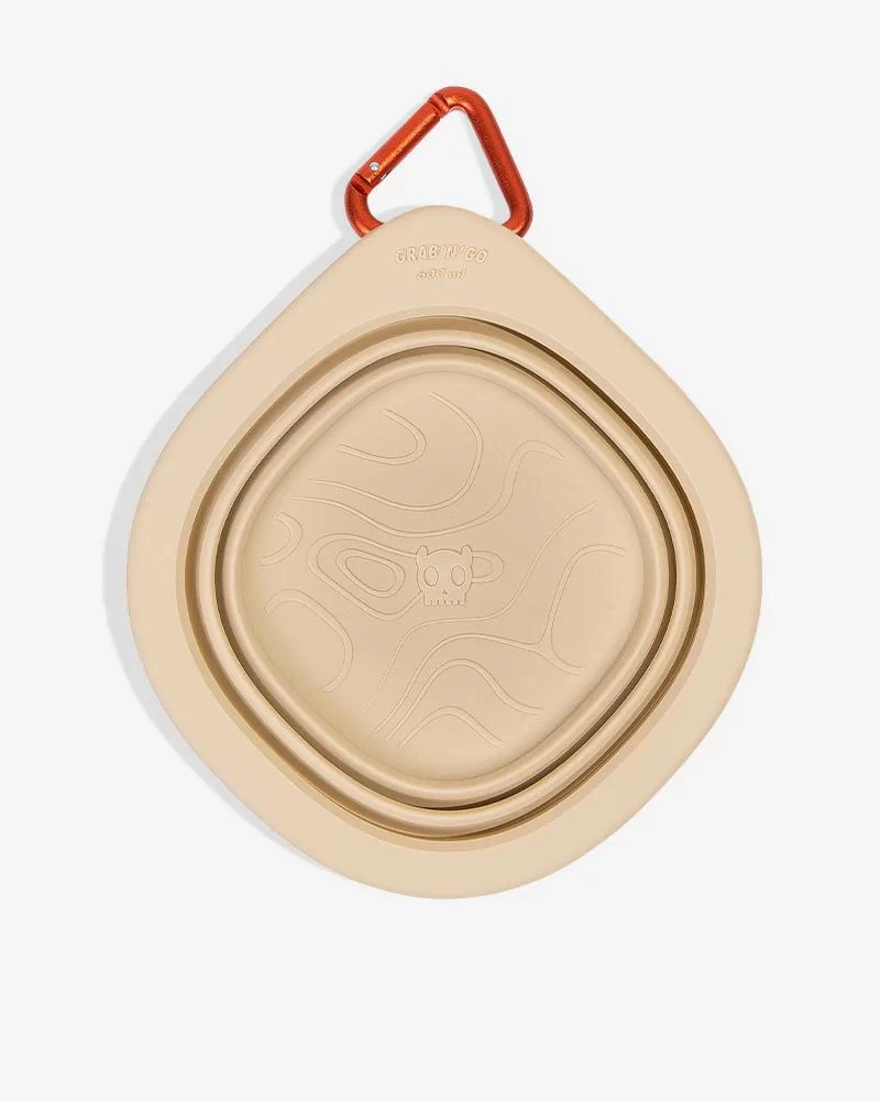 The Go Bowl holds 20 oz (600 ml) and is perfect for both food or water. It stores flat and the attached carabiner makes it easy to grab and go.